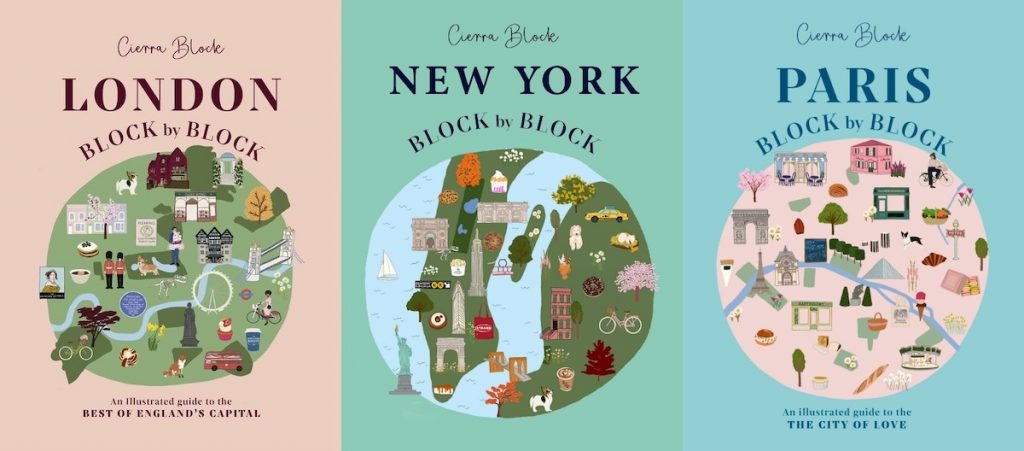 We’re very happy to report that the German editions of Cierra Block‘s LONDON BLOCK BY BLOCK, NEW YORK BLOCK BY BLOCK, and PARIS BLOCK BY BLOCK are all out now! Published by Frederking & Thaler, here are the synopses and the other covers…