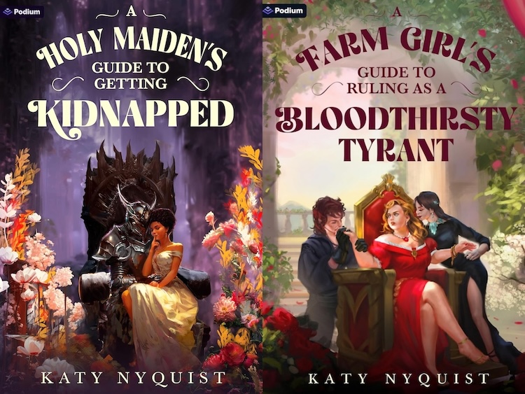 The first two novels in the Scandals of the Gifted series are out now, published by Podium in print, eBook, and audio (read by Hollie Jackson): A HOLY MAIDEN’S GUIDE TO GETTING KIDNAPPED and A FARM GIRL’S GUIDE TO RULING AS A BLOODTHIRSTY TYRANT.