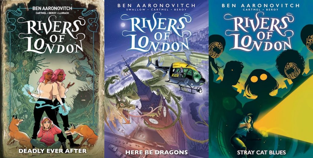 Series art is by the always excellent José María Beroy (who has worked on the majority of the Rivers of London comics). DEADLY EVER AFTER is co-authored with Celeste Bronfman. HERE BE DRAGONS is co-authored with James Swallow.