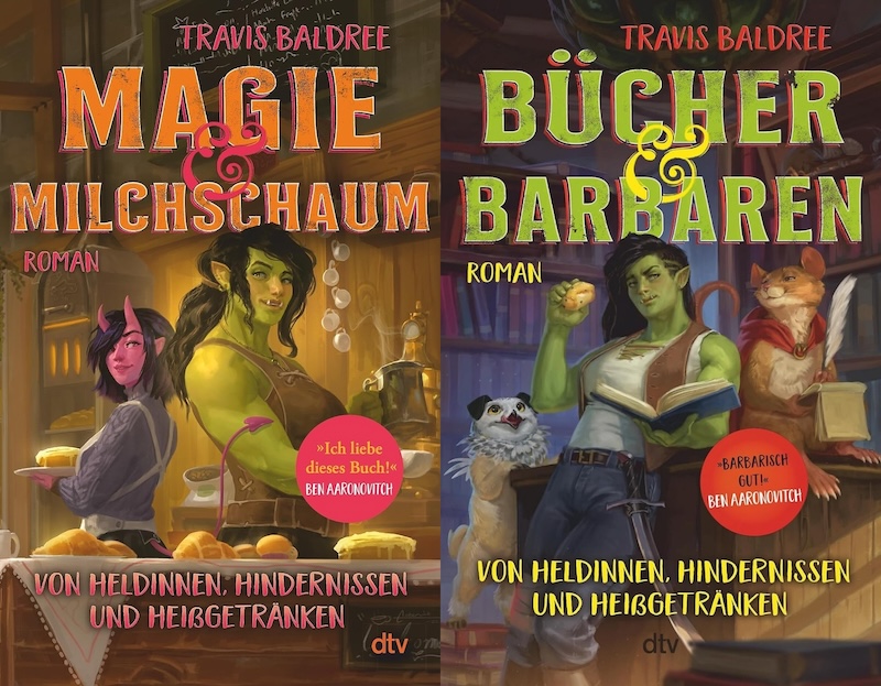 The first two novels in the series — LEGENDS & LATTES and BOOKSHOPS & BONEDUST — are also available in Germany, published by DTV as MAGIE & MILCHSCHAUM and BÜCHER & BARBAREN.